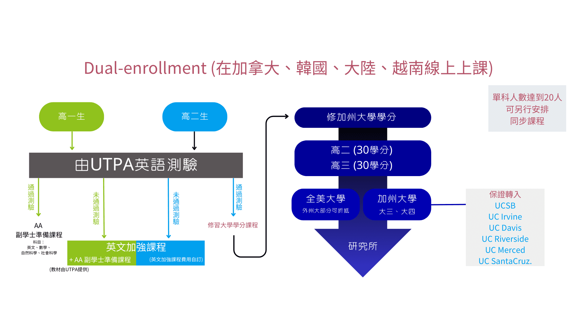 enrollment雙入學課程。結合三年的高中課程與大一大二通識課程,充分發揮學院的環境與優勢,快速省錢進名校。